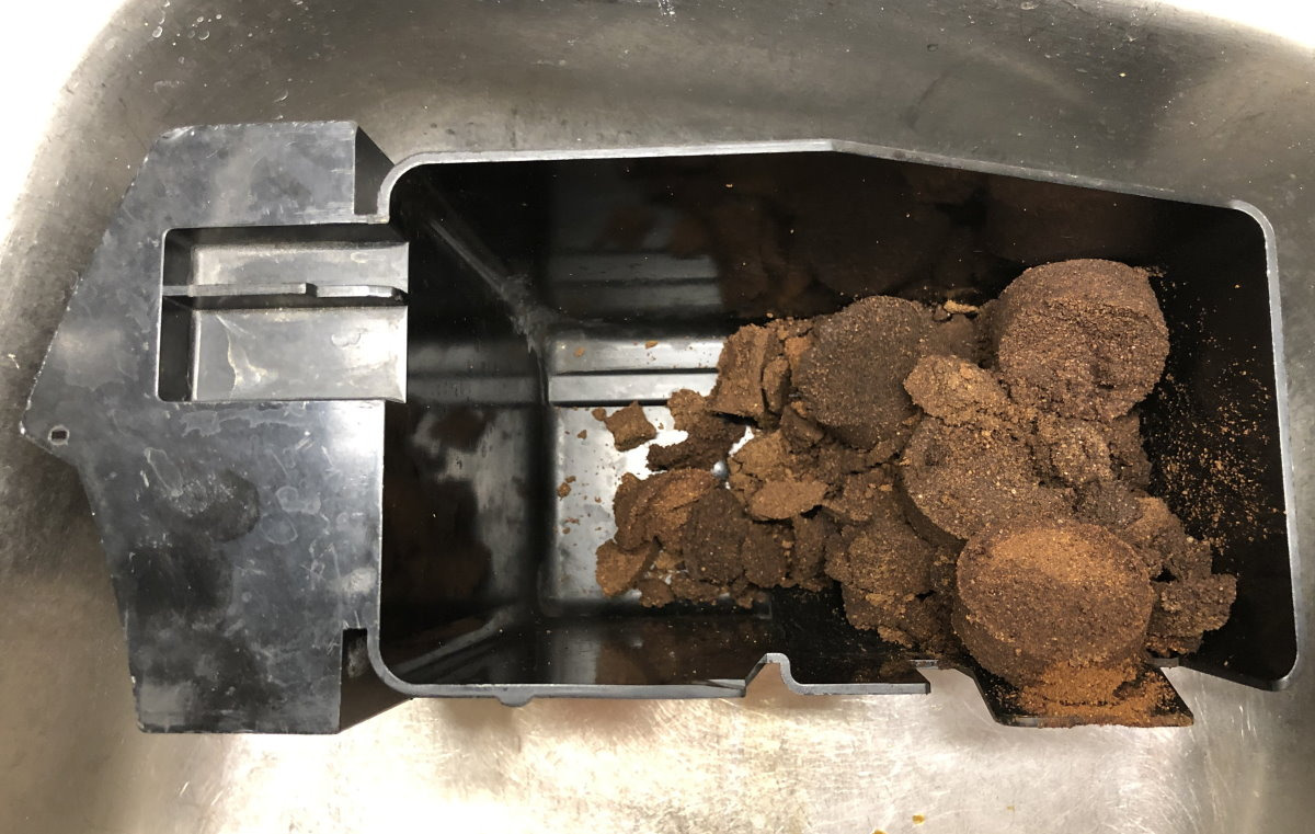 ich habe folgendes Problem bei meiner Solis Master Pro: ein Teil des Kaffeemehls klebt am oberen Sieb. Es erscheint mir zu trocken (siehe Foto nach einem Espressobezug)